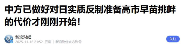 中方已做好对日实质反制准备高市早苗挑衅的代价才刚刚开始!——新浪财经